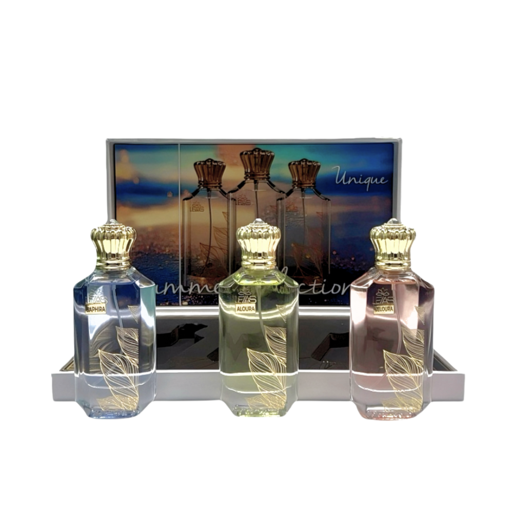 ثلاث بصمات عطرية آسرة… كل واحدة منها تروي حكاية أنثى مختلفة، واثقة، ومتفرّدة. مجموعة الصيف ليست مجرد عطور… بل تجسيد حسيّ لذوقكِ الرفيع وشخصيتكِ المتجددة.